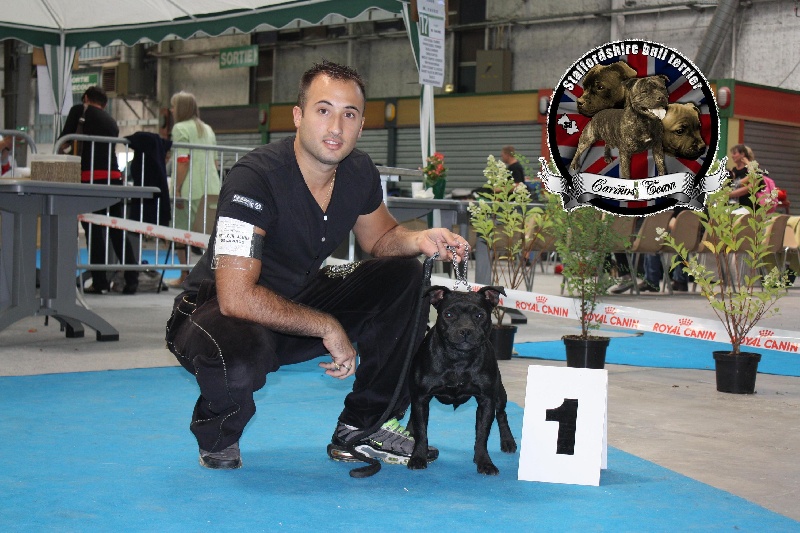 Chien Staffordshire Bull Terrier Étincelle Miss and Manjol