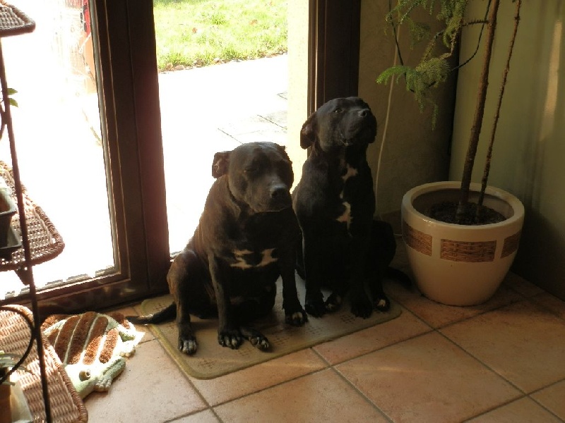 VIRGIN est ma 1ère Staffie . C'est une grande femelle bien charpentée avec une belle robe noire bringée rouge .C'est une chienne très a l' écoute sans doute la plus intelligente de toute ma bande ! Elle reste la matriarche incontestée dans " la meute"