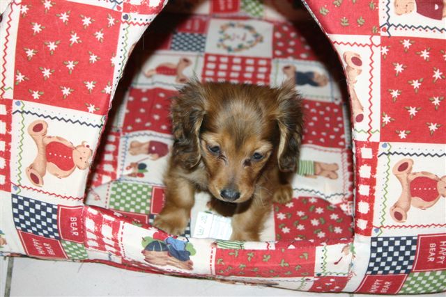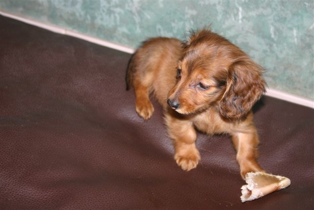 Articulé dentaire OK - DCC - Jolie petite tête - Oreilles de bonne longueur - Bonne poitrine - Fourrure de bonne qualité pour un puppy - 28 cm - Exc aplombs avant et arrière - Exc ligne dessus et dessous - Exc présentation et statique.