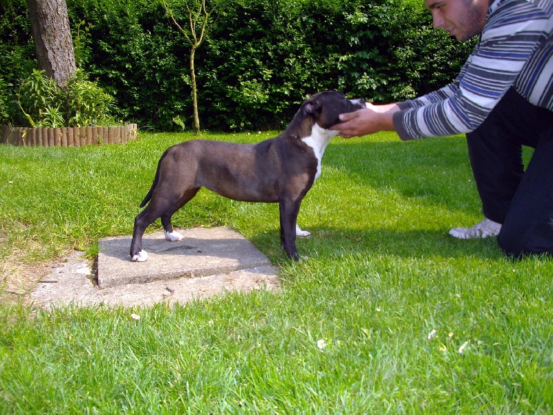 Six mois,trés bonne tête, yeux corrects ,trés bonne encolure,épaule ,croupe et pieds.Tête un peu basse en mouvement,trés bon caractére.