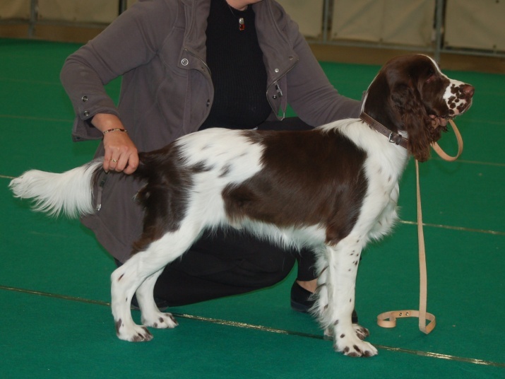 Belle tête (propre), la crane un peu lourde, une bonne attache du cou, un peu droit devant, heureux mouvements, un peu étroit devant, portant une queue drôle, bon manteau et le tempérament