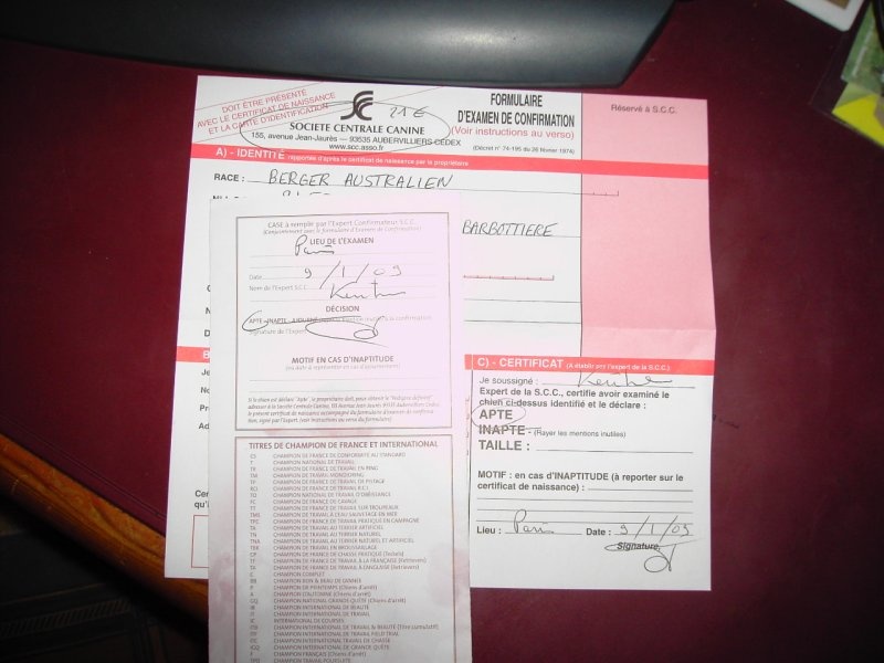 Maladie Hériditaires Oculaires Canines - IndemneDyspasie - B/B (= non dysplasique)Dentition - Complète en ciseauxREMARQUE - CHIENNE STERILISEE EN RETRAITE