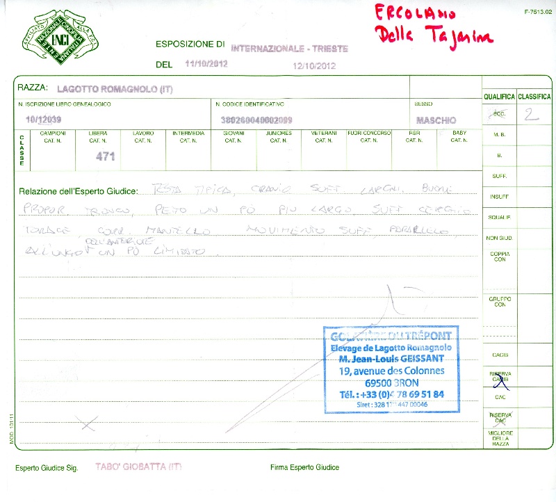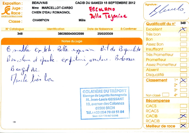 Manifestion : CACIB du 11 octobre 2012 - Juge : Monsieur TABO Giobatta (Italie)
