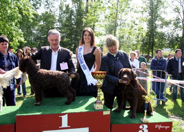 Engagement en Classe « CHAMPION Mâle » sous le n°348 -/- Juge Madame Bétrrix MARCELOT-CARBOT (France)) -/- Qualificatif : Excellent -/- Classement : 1er -/- Récompense : CACIB + BOB -/- Notes du Juge : « B modèle, Ex tête, Belle expression, Poil de B Qualité, B encolure et épaule. Ex poitrine, ossature. B dessus. B angul AR. Marche très bien » (ndj) -/-
