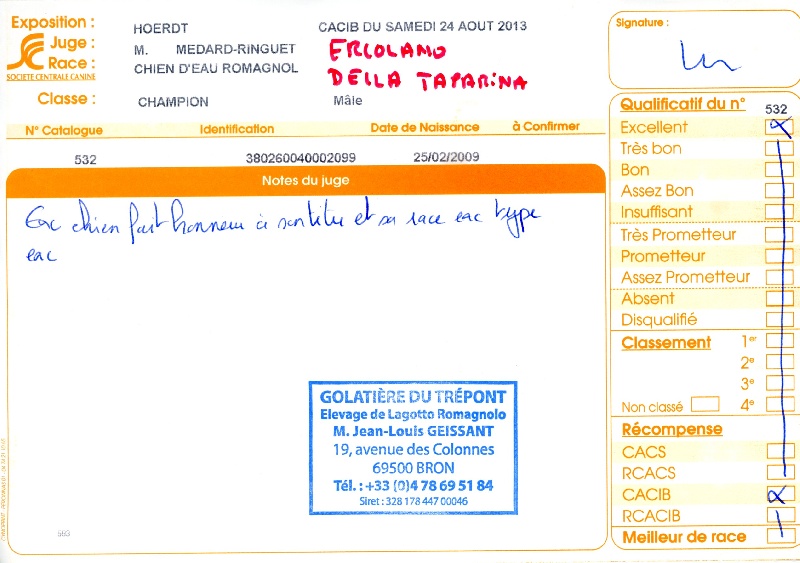 Manifestion : CACIB du 24 août 2013 - Juge : Monsieur MEDARD RINGUET Jacques