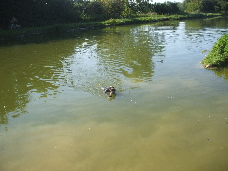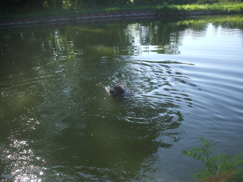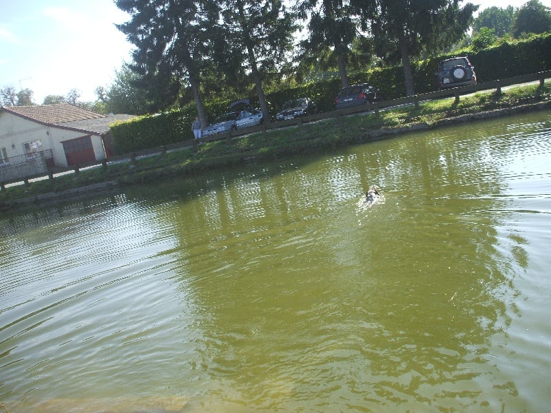 LE CANARD ET TOMBER DE L AUTRE COTE DE LA RIVIÈRE AVEC UN FORT COURENT LE CHIEN TRAVERSE ET NAGE PREND LE CANARD ET RETRANSVERSE RAPPORT TAN ACCORDER