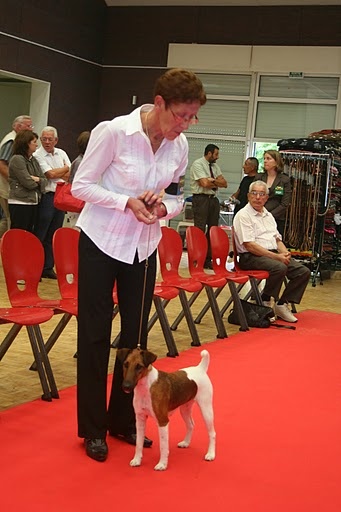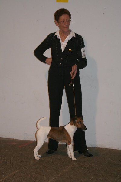 Joli sujet - exc. tête, oeil, oreilles - belle expression féminine - exc. cou, dos, implantation de queue - TB épaules - exc. poitrine - exc. antérieurs et postérieurs -belle dynamique - serre un peu à l'arrière.