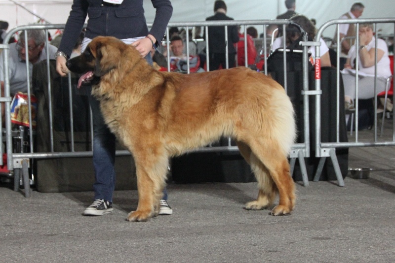 4 mois, très bien développée. Corps construit harmonieusement. Bonnes angulations. Belle tête, masque un peu juste, yeux presque foncés. Oreilles correctes. Très beaux cou et ligne de dos. Croupe et queue correctes. Poitrine très bien développée. Pattes avant // et très bien angulées. Très beaux mouvement harmonieux avec bon port de queue. Très belle couleur. Caractère amical et équilibré.