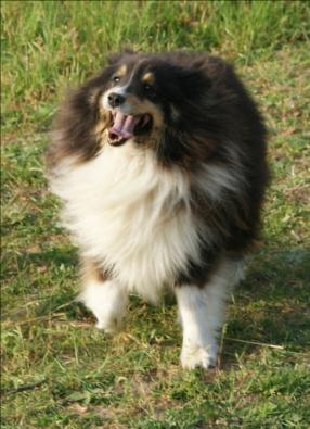 Notre tout premier sheltand, il a une superbe fourrure, très calin, bon gardien, joueur et très obéissant il préfère la compagnie des filles de la maison