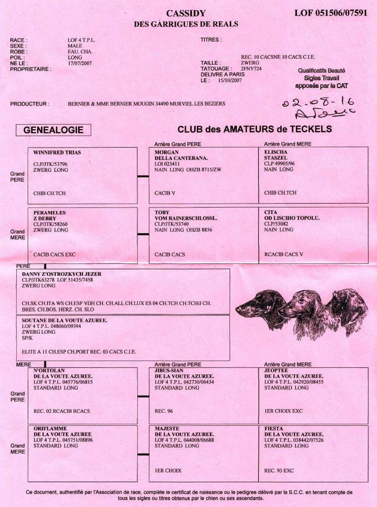 Pédigree de CH. Cassidy des Garrigues de Réals