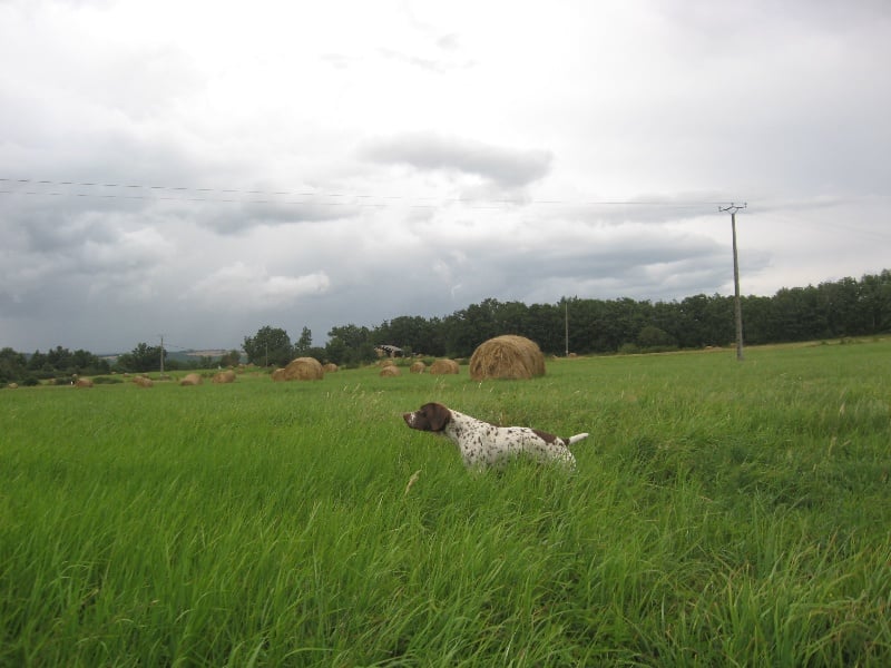 C'est également une excellente chienne de chasse. Aprés avoir été dressée et entrainée en Andalousie par P. Teulieres, elle a éclaté lors de la dernière saison. Elle possède un trés grand nez et un trés beau port de tête.