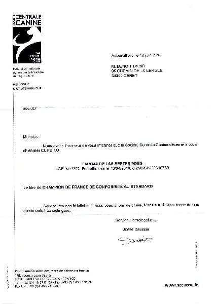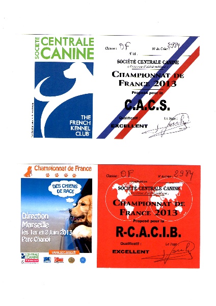 - 1er Excel (CACS-CACIB) classe ouverte femelle à Perpignan 2013