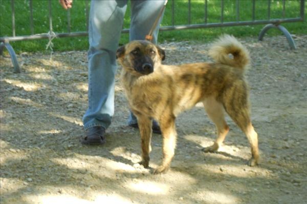 Bringé masqué montant haut. Ex pigmentation et oeil. DCC. Tête féminine dans le type. Poitrine haute av, un bon dessus. B ossature angulation correcte. Allure à améliorer.