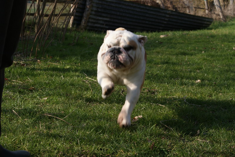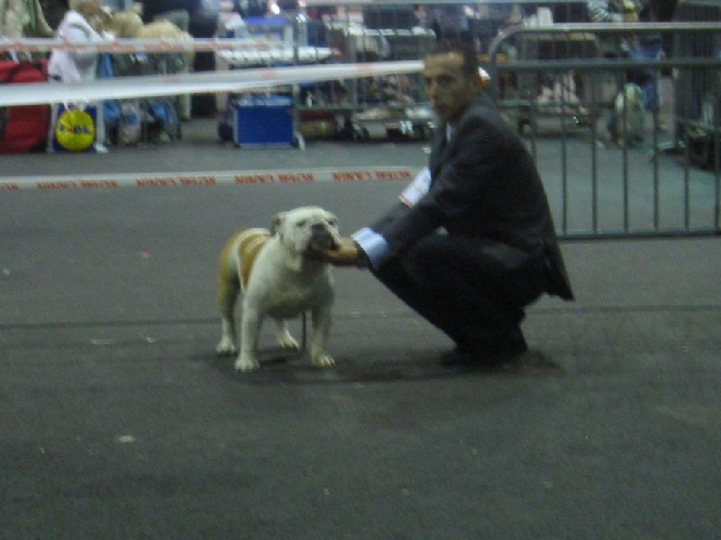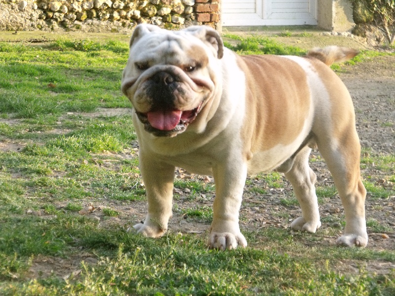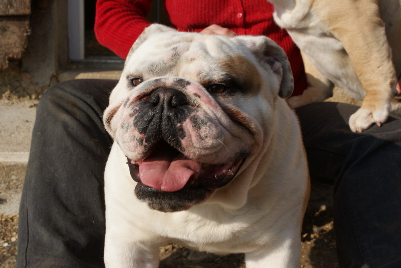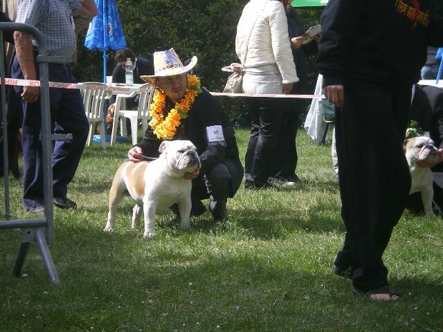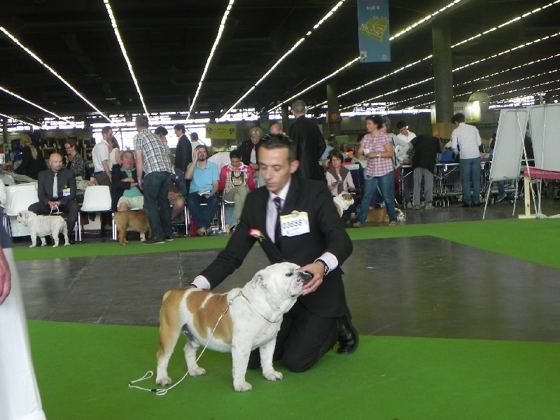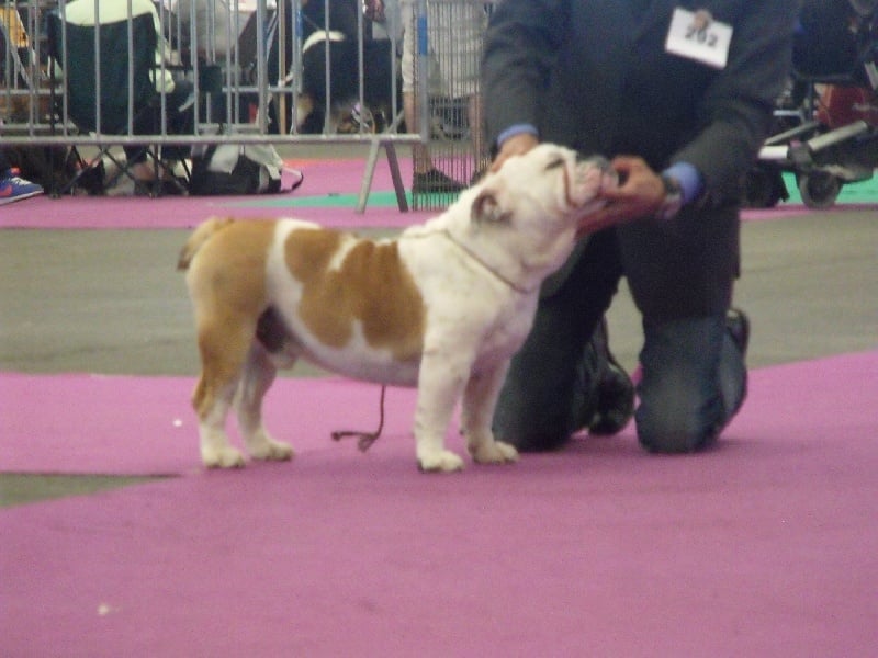En excellente condition, sujet bien proportionné, tête avec une bonne expression typique, crâne fort et carré, Excellent chanfrein, bonnes rides, babines bien épaisses, yeux bien foncés, oreilles en rose.Machoire suffissamment large et bien recourbée, bonne ossature, bons aplombs avant, epaules bien rapportés au corps, la ligne du dessus pourrait être plus accentuée, bon arrière main, queue droite.Démarche lourde et contrainte typique, excellente présentation, chien calme et agréable, sujet équilibré, chien sympathique et excellente respiration.