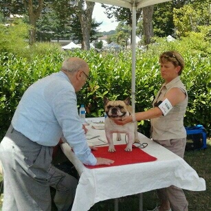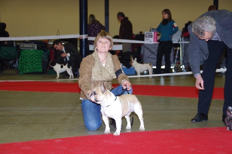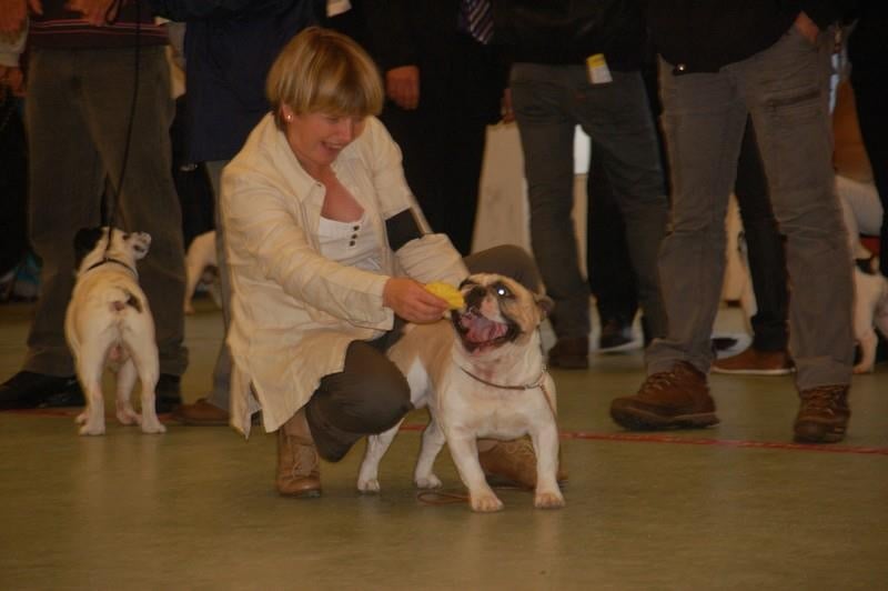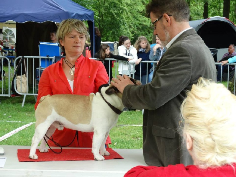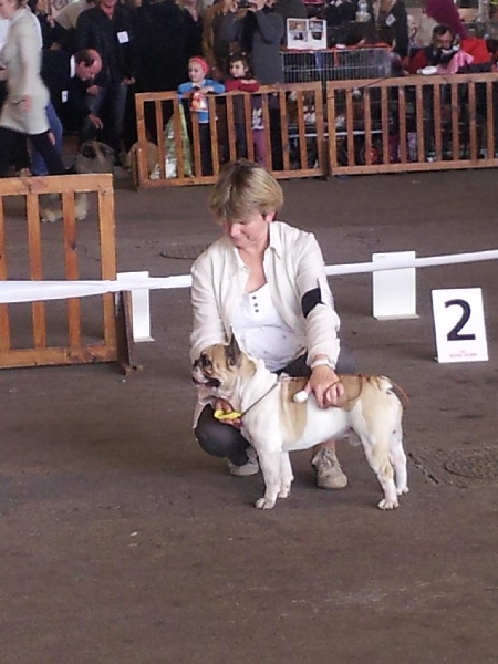 dans les 6 Excellents !fauve et blanc - excellent dans son ensemble - exc tête - prognathisme correct - roach back léger - queue présente - puissant - les côtes pourraient être plus rondes -