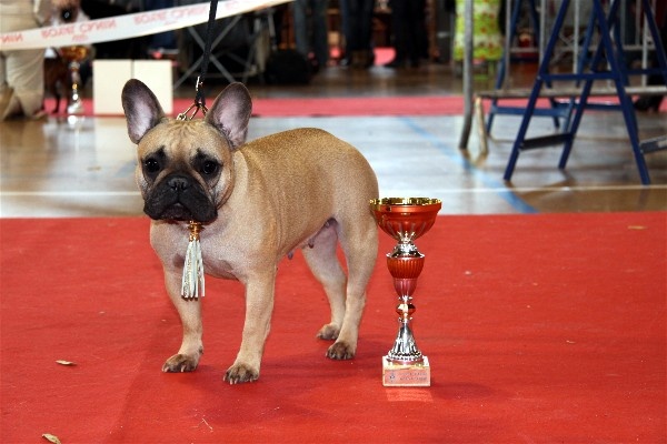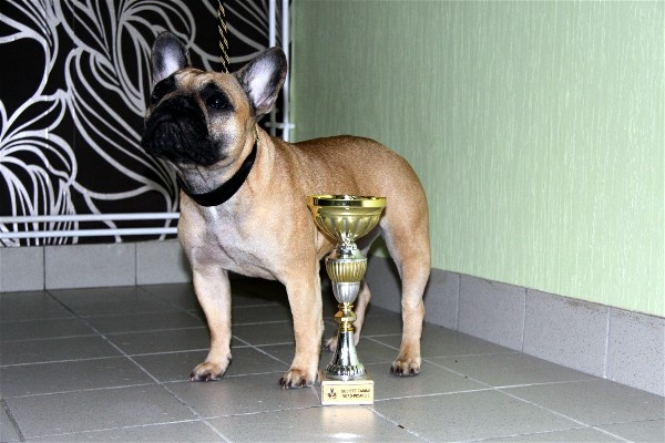Ex sujet, très attractive,B équilibre,B tête ferme;ex crane,ex expression, occlusion correcte,corps B compact,b epaule,ex poitrine,AR M pourrait etre + angulé,B mouvement bien rythmé
