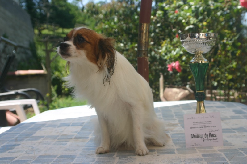 Tête correcte avec liste, dents en pince - bien construite - excellent corps, angulations et aplombs - texture ok - poitrine ok bonne démarche, présentation et port de queue