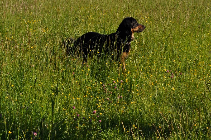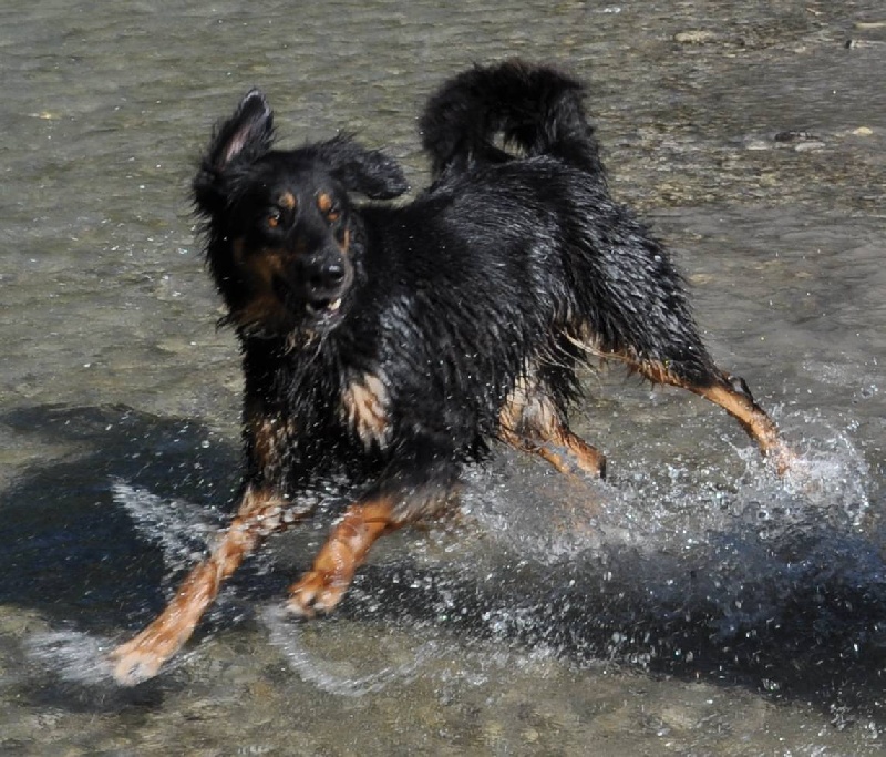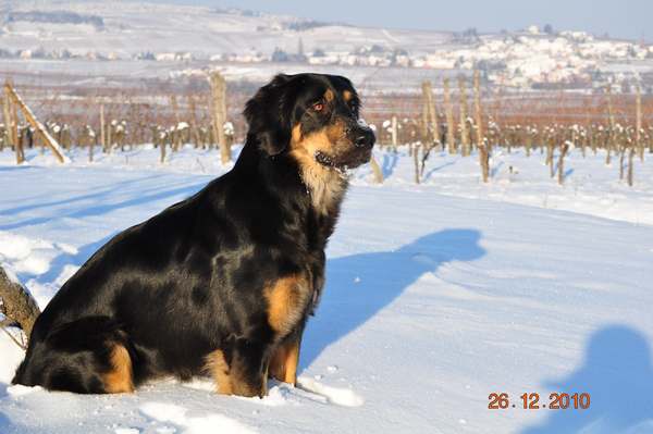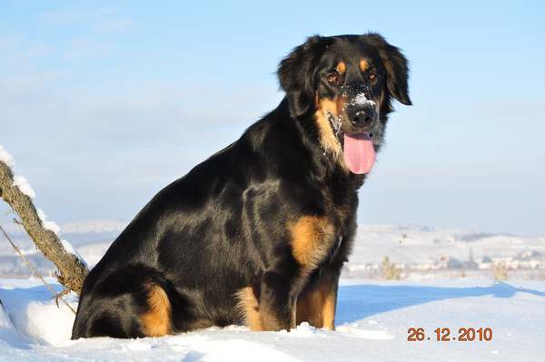 Eine 3 Jahre alte, grossrahmige sm Hündin, Kräftiger Kopf, Korrekter Behang, mitel bis helles Auge,Kompl. Scherengebiss.Sehr gutes Gangwerk, die anatomisch korrekte Rute von guter Länge.Schönes schwarzes mittellanges Haarkleid, Die Marken der Oberaugenpunkte sind deutlich vorhanden, sehr gut gesetzt, und von mittlerer Tönung