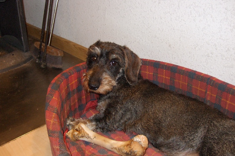 Excellente tête, excellente dentition, dessus, ossature et poitrine. Excellente démarche. Poil pas assez dur.
