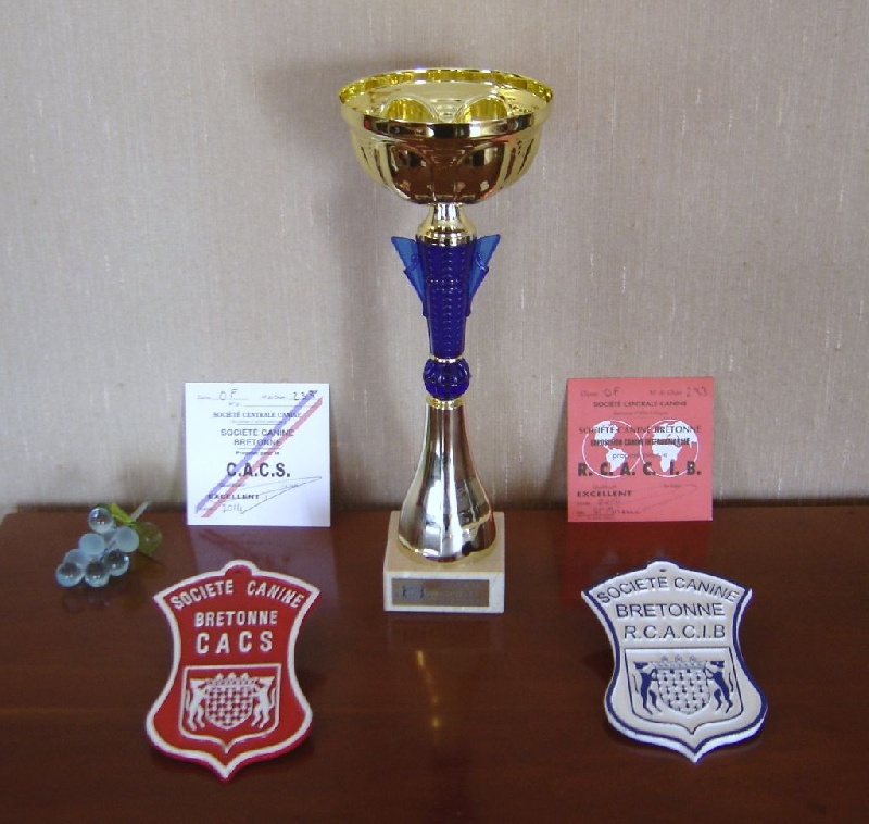 ensemble féminin - bien proportionné - tête expressive - oreilles bien attachées - excellente encolure - Bonne répartition couleurs - TB arr. mains - mouvements réguliers. 1er EXCELLENT + CACS + RCACIB