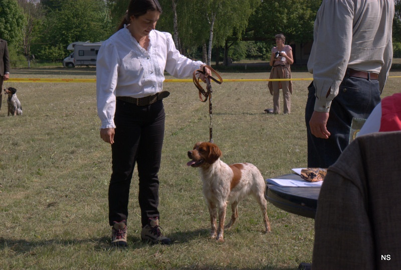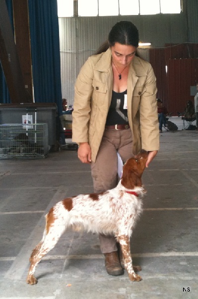 49 cm 10 mois, Excellent jeune sujet avec une excellente tête typée et bien bretonne. le dessus est rectiligne et demande a se raffermir. La poitrine est en rapport avec son age et prendra du volume en son temps. Excellents aplombs et angulation.