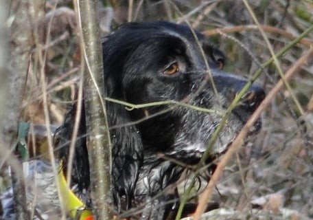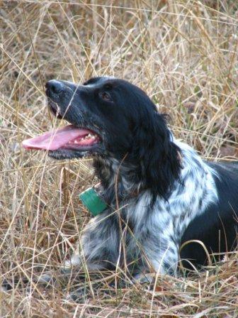 La photo, c'est pas du chiqué : il y a une bécasse au bout ! Asie c'est la grande classe, une superbe trouveuse, avec le sens de la place et un grand nez. Elle chasse encore plein galop pendant 2 heures à l'âge de 11 ans, avec un port de tête somptueux. Et verrouille à 3 mètres une bécasse légère à sa remise.