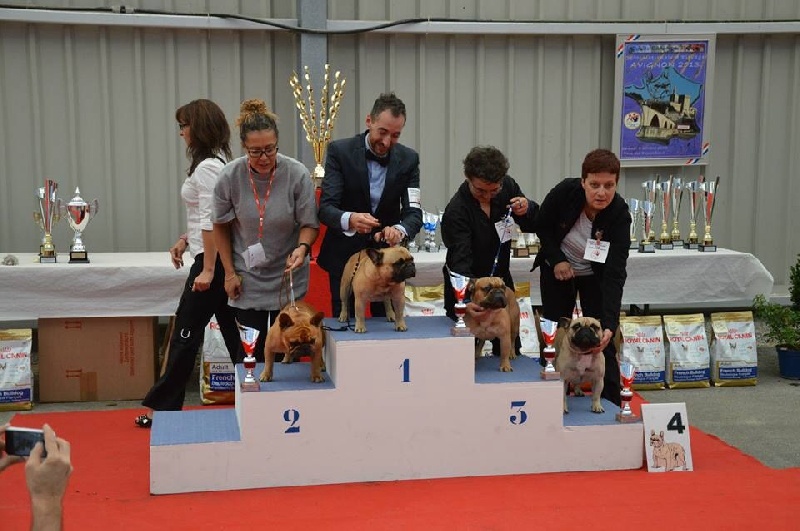Présent lors du WOLRD DOG SHOW 2011 à Paris le dimanche 11 juillet 2011,il a été classé 4 eme EXC classe jeune mâle fauve sous le jugement de Mr Muntean Petru..Seul jeune mâle fauve de nationalité française à être sur le podium !