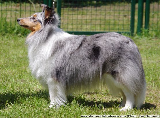 DCC, Joli modèle féminin de taille idéaleExcellente tête et proportionsCrâne bien platExcellent port d'oreilleExcellents aplombsBien proportionnée avec ossature suffisanteTrès belle couleur de bleuBelle démarche avec fouet bien porté
