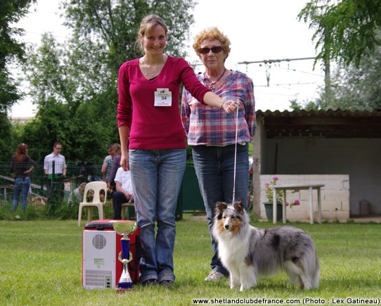 3 ans, DCC, Très belle structure de tête avec d'excellentes proportions, belle expression, excellent port d'oreilles, feu bien marqués, construction très harmonieuse, belle ossature, excellente ligne de dessus (sortie d'encolure dos et corps) excellente position en statique, très jolie et si bien présentée, belle couleur de bleu, belle démarche, sujet de qualité, Meilleure femelle.
