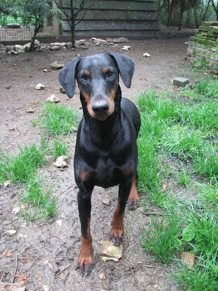ADORABLE PETITE DOBERMANN DE COULEUR NOIRE ET FEU TRES CALINE PLEINE DE VIE, CONVIENDRA A DES MAÎTRES POSSEDANT UN JARDIN, POUR LA COMPAGNIE ET / OU LES EXPOSITIONS.