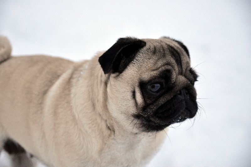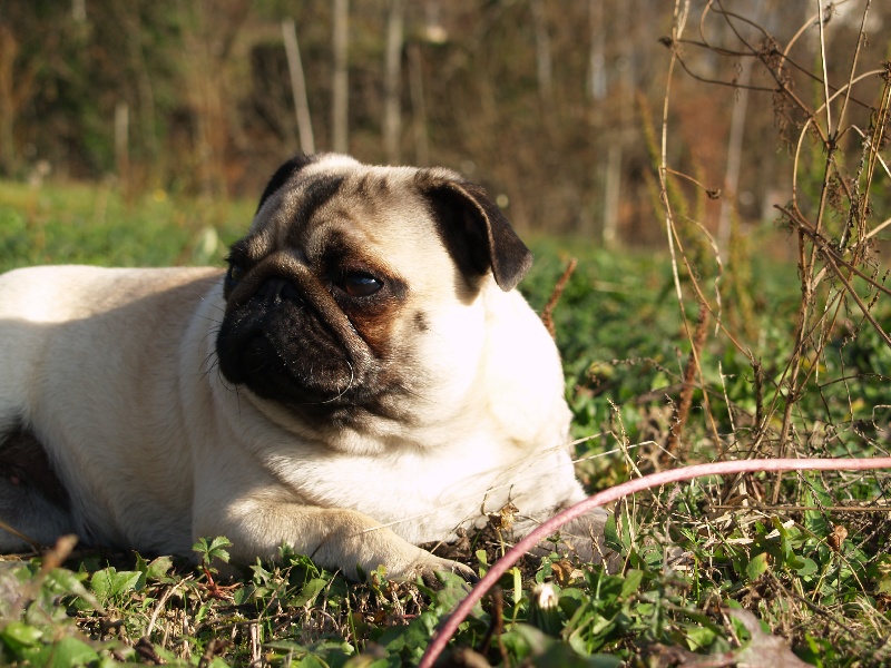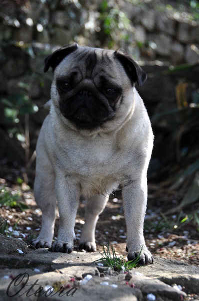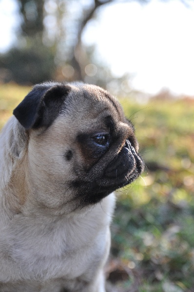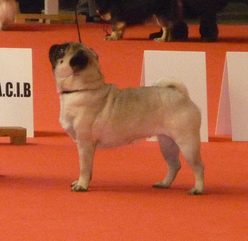 Compact overall - feminine head with wrincke - dark eyes could be larger - small thin ears - Good Angulation - tail high set - coat soft - good mover - black toe nails --- TRADUCTION---Compacte en général - tête féminine avec rides - yeux sombres pourraient être plus grands - oreilles petites et fines - bonnes angulations - queue attachée haute - poil doux - bon mouvement - griffes noires