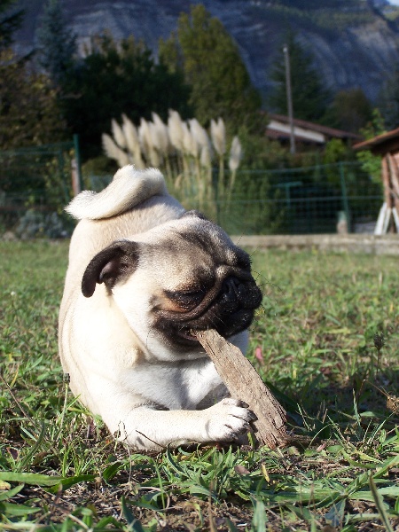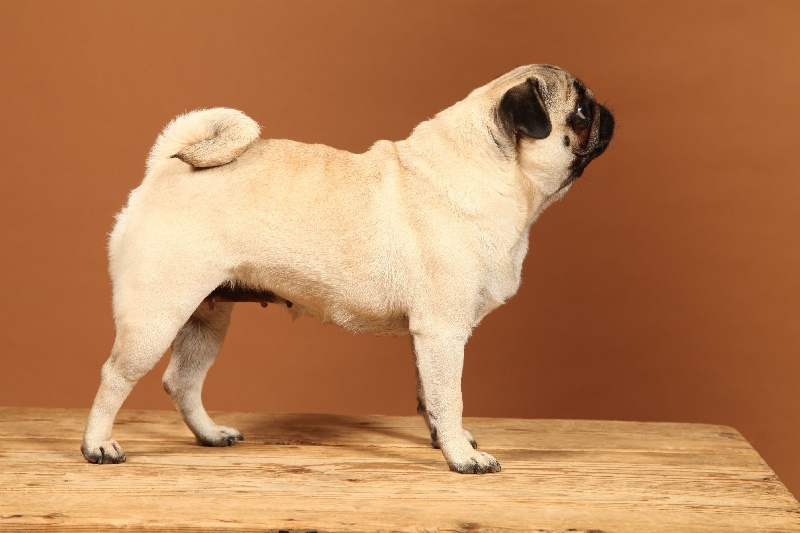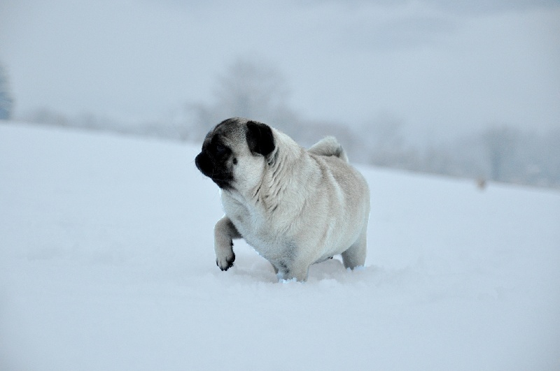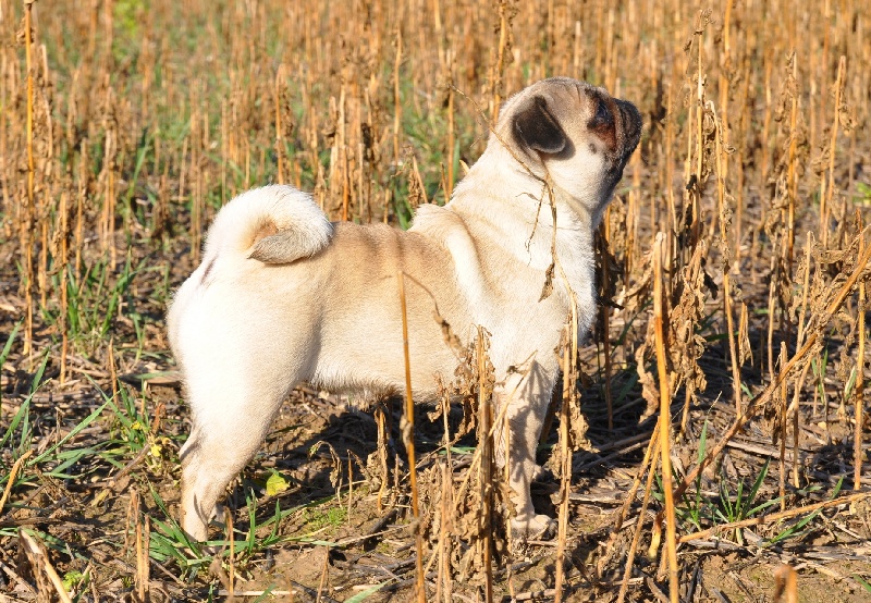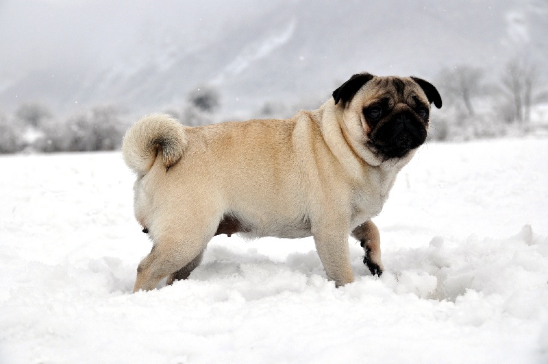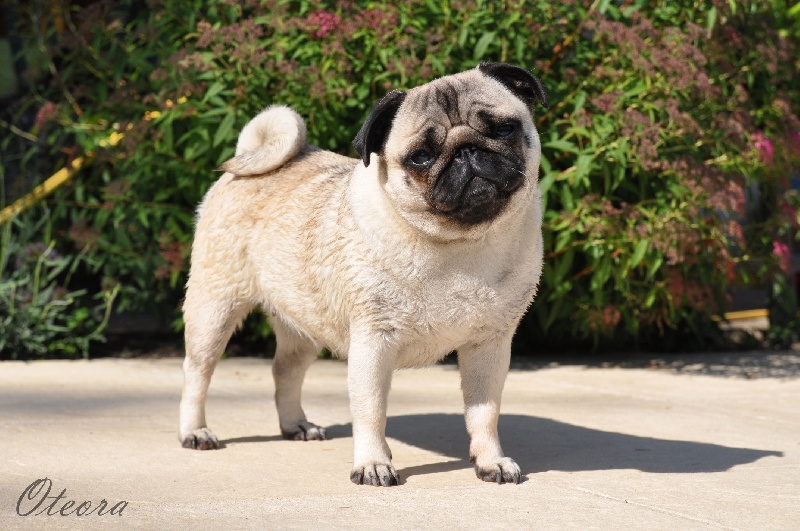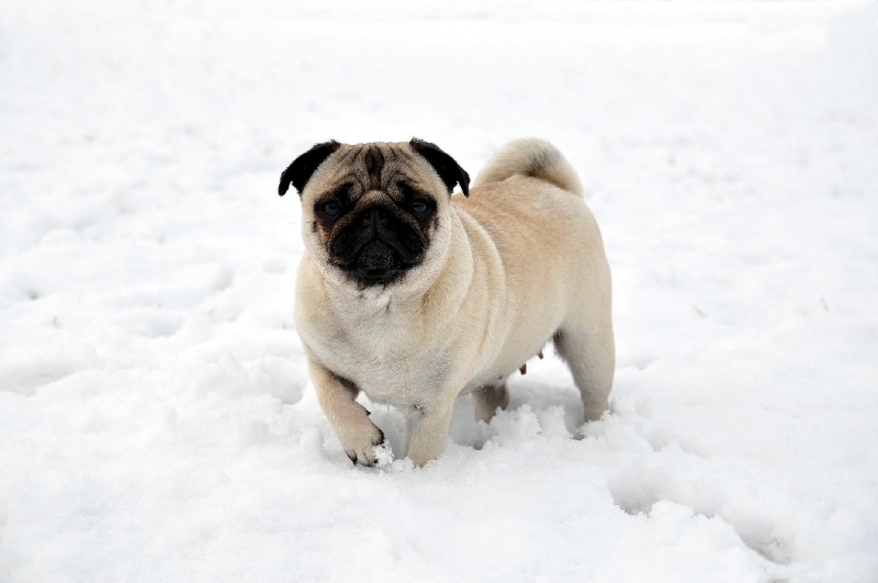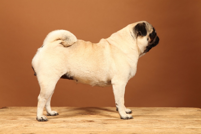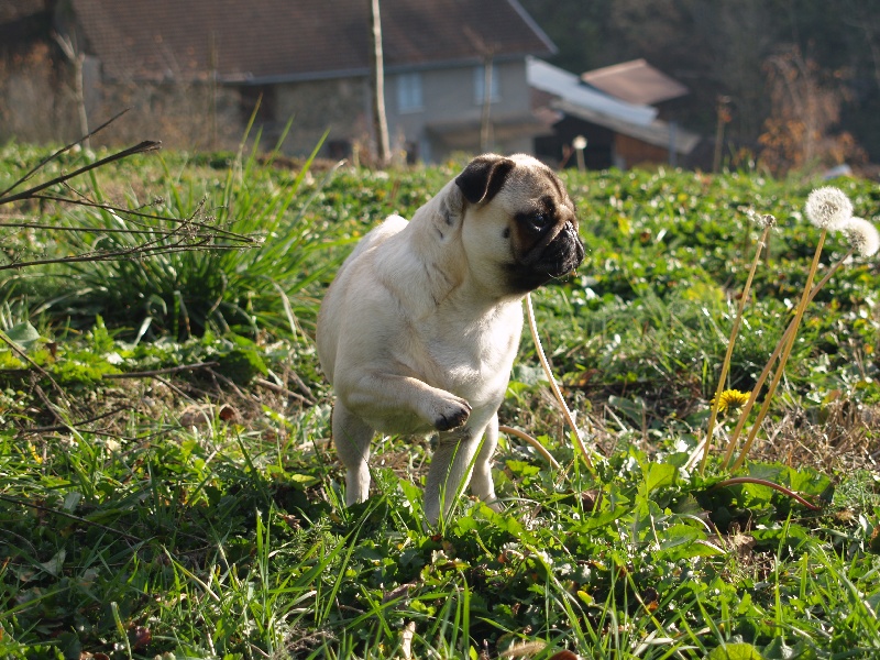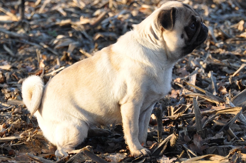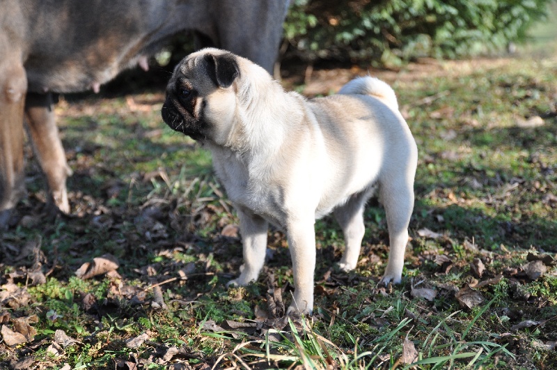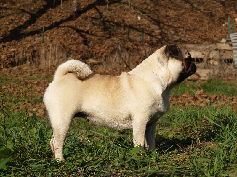 Petit modèle bien typé, excellente tête - plis bien marqués - excelentes oreilles - narines ouvertes - excellente bouche - excellente pigmentation - bien construite - excellent corps et ligne de dos - bonne ossature - jolis pieds avec doigts écartés - bonne queue - bonne présentation - jette les pattes avant
