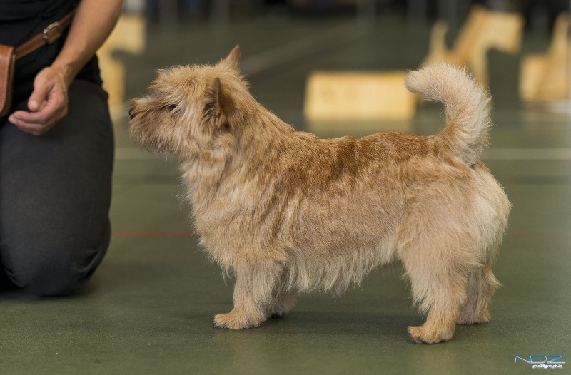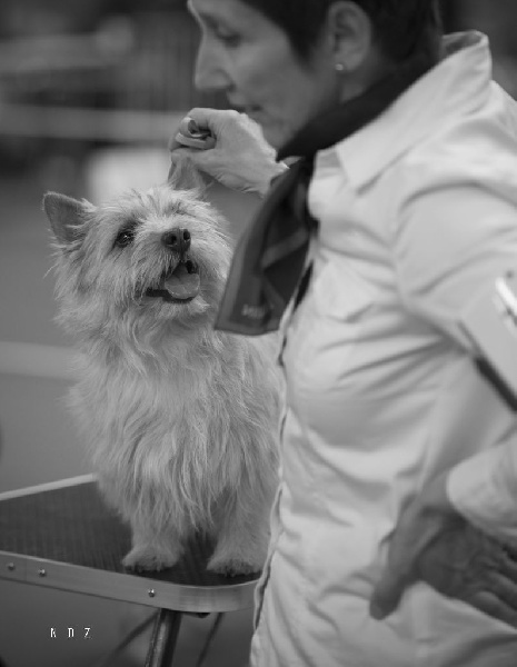 Excellent sujet court et compact.Très jolie tête avec un chanfrein court. Excellente dentition. Excellent œil forme et couleur. Pigmentation de truffe devrait être un peu plus vive. Excellente oreille de bon format très bien portée. Ligne de dos bien tendue, excellente poitrine. Excellent arrière-main. Excellente texture de poils. Bon mouvement, bon port de fouet.