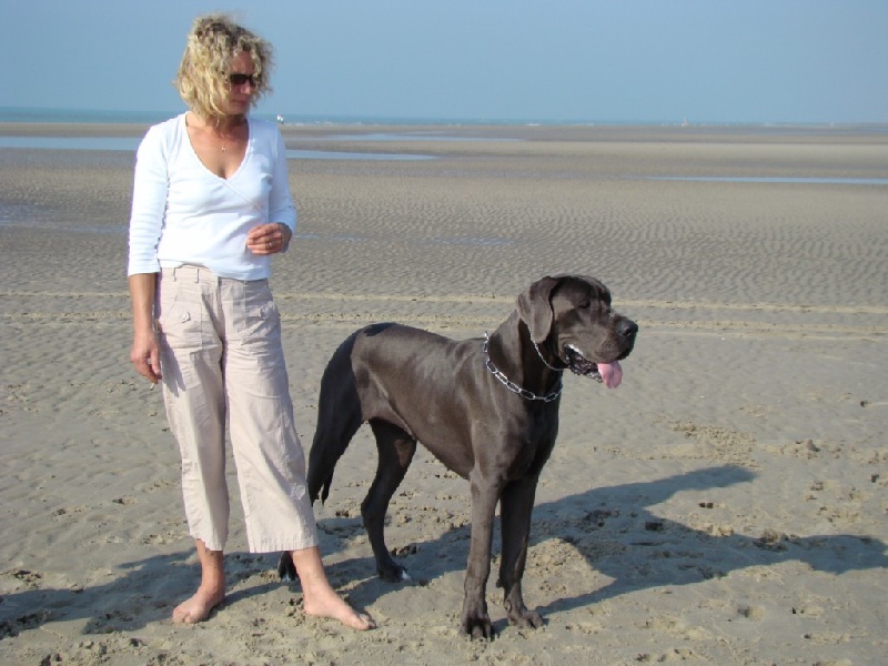 3 ans, DCC, bonne taille, ossature moyenne, harmonieuse et puissante; Excellente couleur, bleu presque intégral. Yeux OK, bonne forme, bien placés ; tête féminine. Chanfrein devrait être plus large ; stop correct, crâne assez ciselé, truffe devrait être plus large. Excellentes babines, encolure de bonne longueur, assez galbée, légèrement chargée, épaule correcte (legt brassicourt). Bons ,applombs, exc peids, exc poitrine, poitrail trop juste un peu serré dans son avant, dessous légèrement plongeant, exc ligne du dessous, croupe OK, TB angulations arrières, fouet OK, allure fonctionnelle semble génée post droit