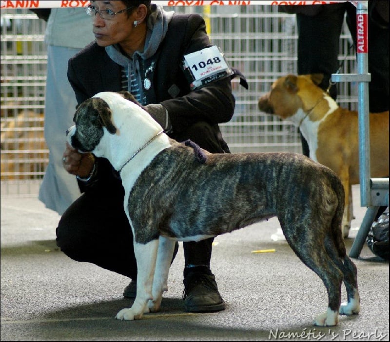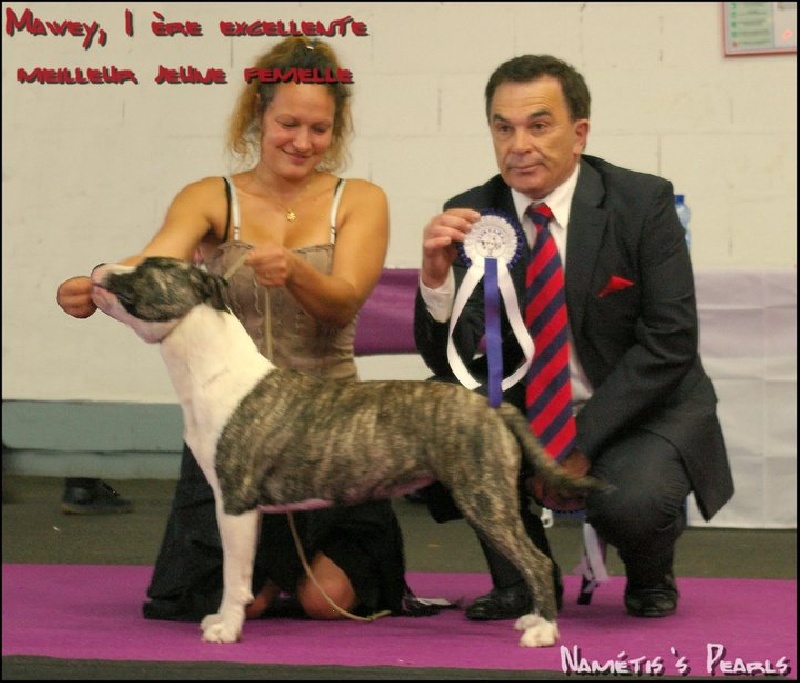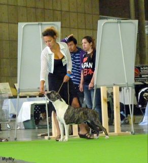 Ex sujet qui représente bien sa race. Belle expression, Dentition parfaite, Yeux bien placés, Exc dos, poitrine bien développée pour l'âge. Exc épaule, doigtsExc caractère, présentation et mouvementMeilleur femelle