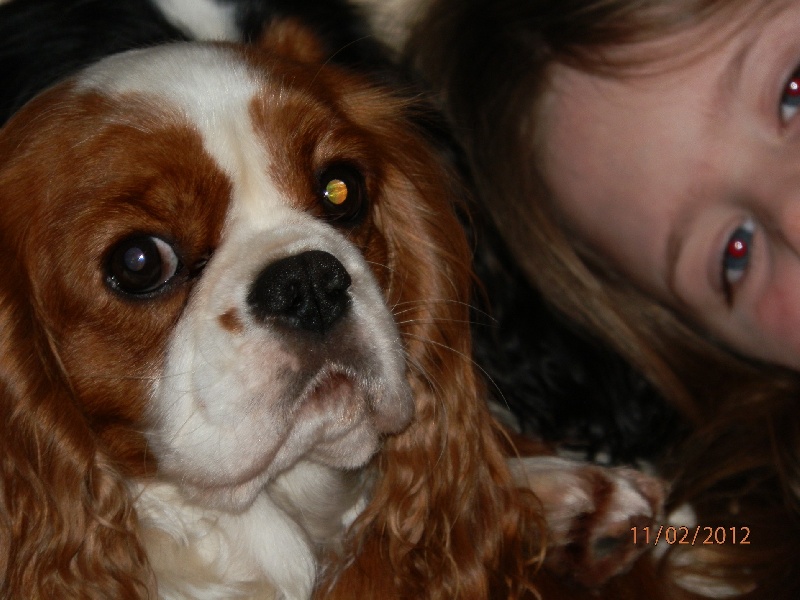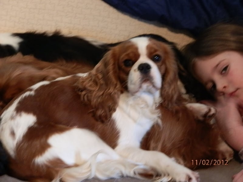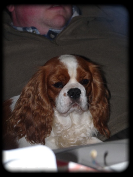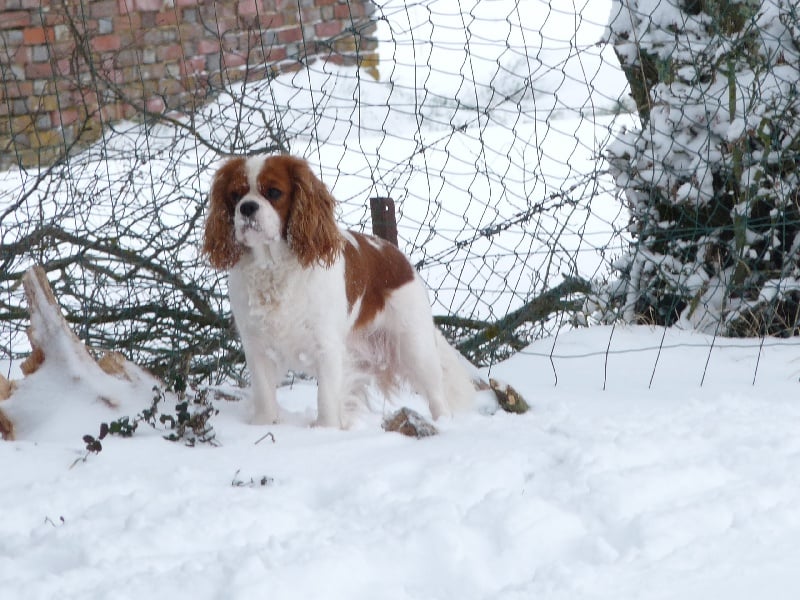Chien Cavalier King Charles Spaniel Fuzzy lady de la cour aux Paons