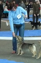 DCC, joli sujet, bon type, exc.tête bien féminine, exc.oreilles pas toujours portées, exc.crâne + chanfrein, exc.oeil, exc.construction + proportion du corps, très bonne ligne de dos, doit s'affermir, exc.angulations et ossature, exc.pieds, un peu timide, allures exc.