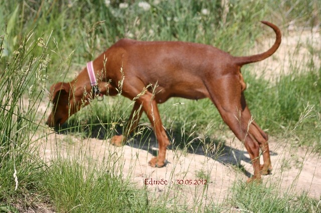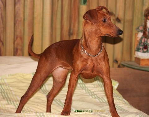 * Classe ouverte unicoloreDcc. Présentée un peu enveloppée, rapp crane/chanfrein correct, oreille pourr mieux portées, bonne encolure, ligne dos tendue, coudes légèremt décollés, bonne angul arr.