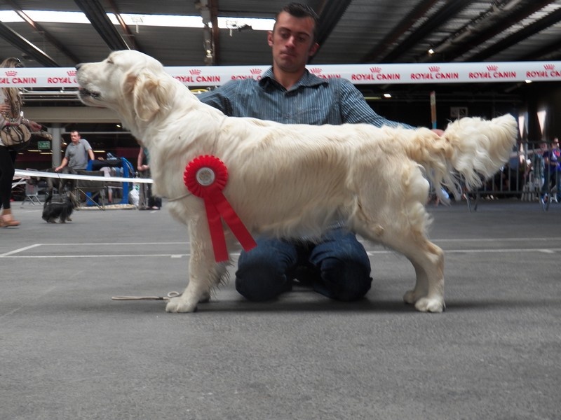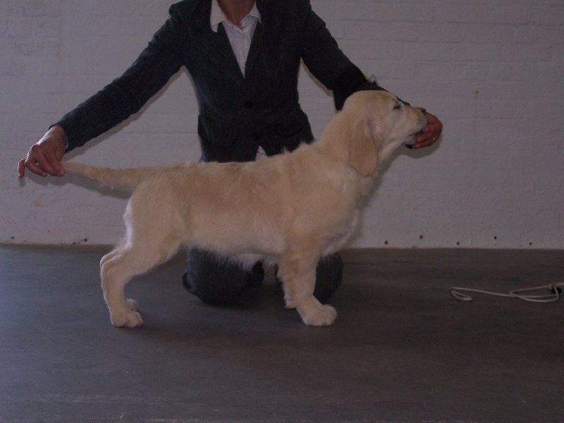 23 mois,Excellent type,DCC,rapport tete correcte .Excellente oblicité des epaules,ligne de dos attache de queue,Excellente angulations avants et arrières. Jolie robe en condition,se déplace bien.