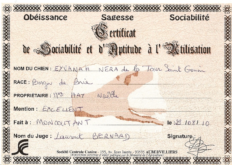 - BREVET D'OBEISSANCE (92/100) EXCELLENT