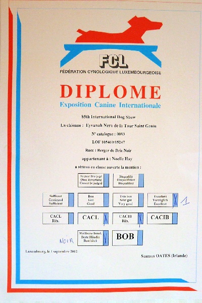- CACS CACIB & Meilleur de Race au Championnat de France 2012 à Metz