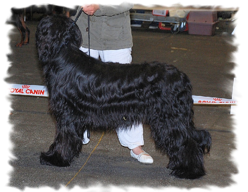 Gabarit excellent. Proportions excellentes. Excellente ligne de dessus. Poitrine Excellente. Excellente ossature. Oeil et denture excellente.Exc épaule, aplombs et angulation arrière.Exc fourrure et couleur.Allures manque un peu de dynamisme.Très jolie tête