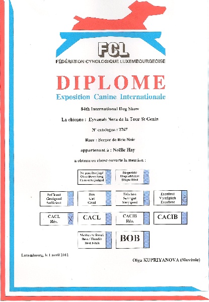 - ¨1ère EXCELLENT,CACS CACIB Meilleur de Race en Classe Intermèdiaire