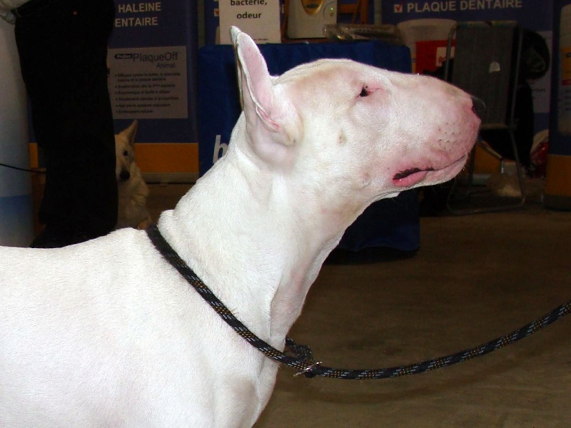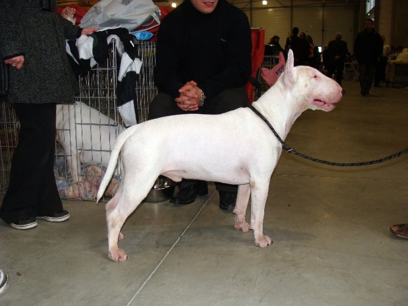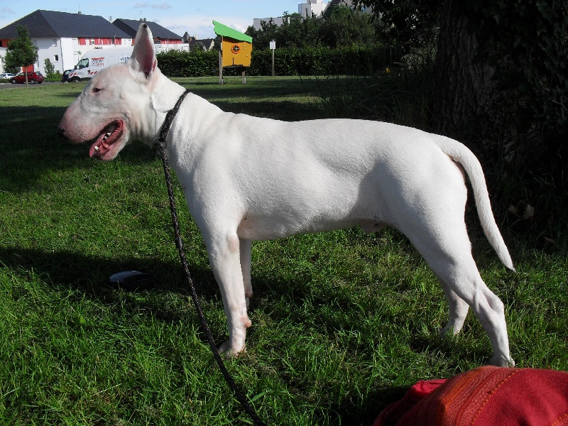 Eagle's est un beau bull terrier encore jeune mais qui peut déjà reproduire et est confirmé.(donc reproduction LOF avec femelles confirmé) C'est un joyeux bull sens souci de santé qui a été tester coeur, reins, dysplasie et ADN.