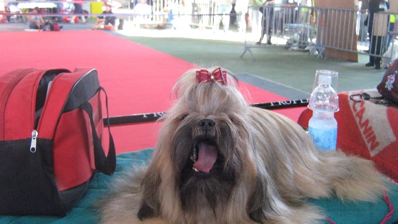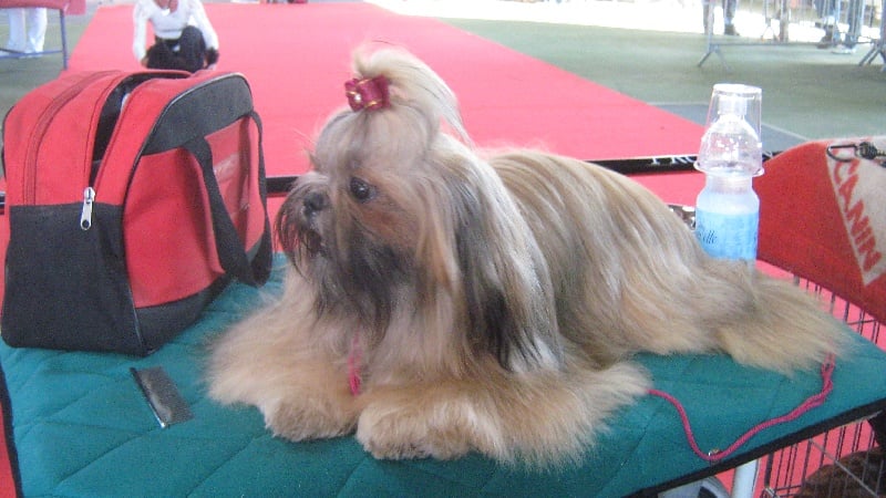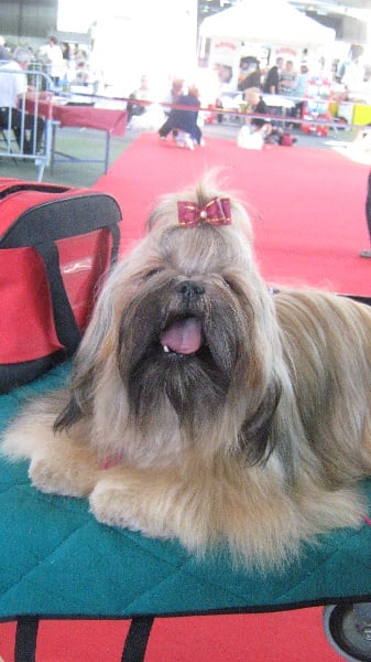 tres jolie tête,bon stop,bonne forme d'oeil et de couleur,bonne epaule,bonne ligne de dos et musculature arriere ,bonne longueur de queue.24 cm .bonne demarche et presentation . voilà ma puce malgré le stress , confirmée et appreciée par Mme Laurent.