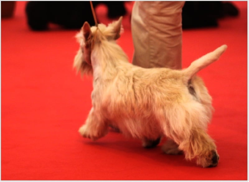 Exc format, Ligne de tête parallèle, Yeux bien foncés, Bonne pigmentation, Bien basse sur patte, belle ossature, bonne attache de fouet, Marche correctement.