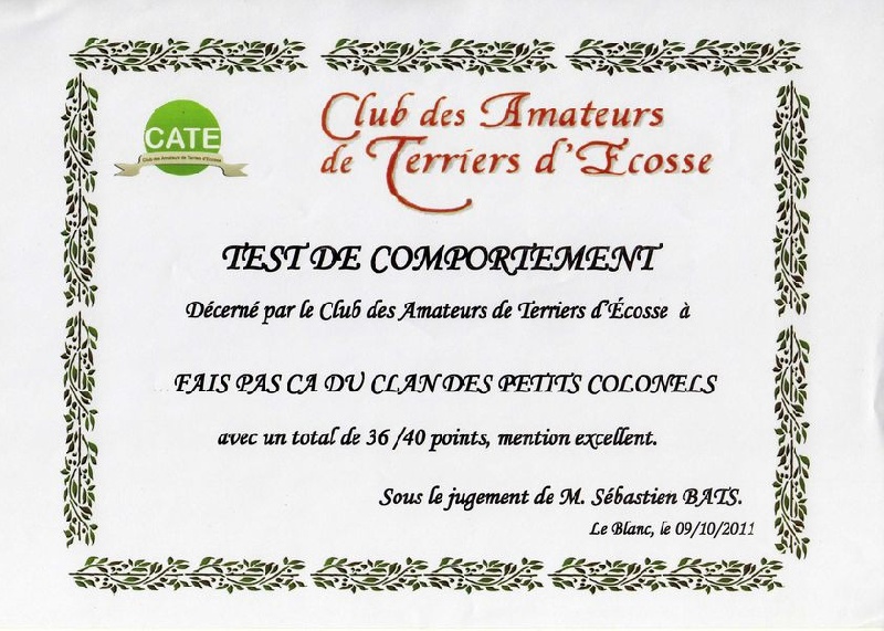 Chien Scottish Terrier Fais pas ça du Clan des Petits Colonels