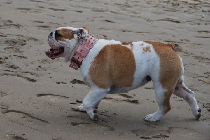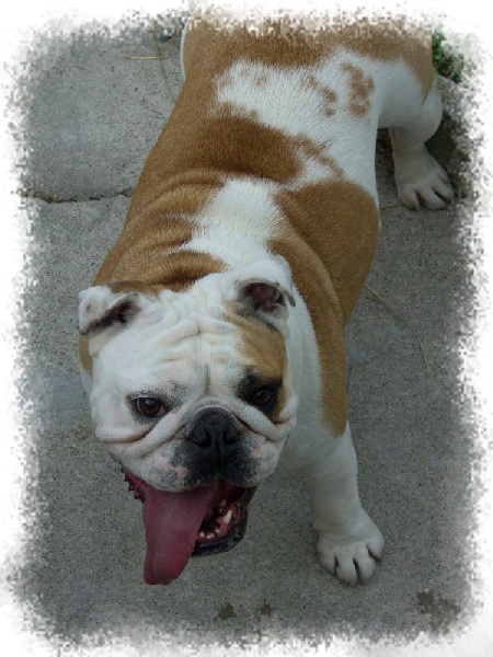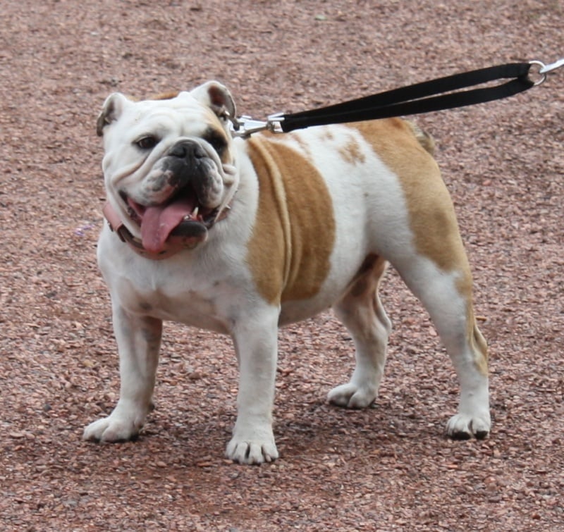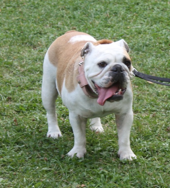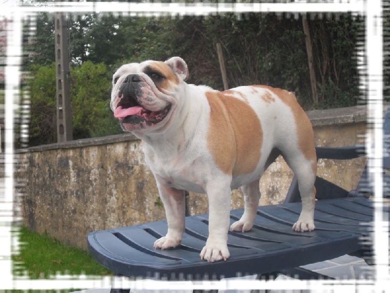 Flo est un bulldog anglais avec un turbo. Toujours prête pour les bêtises! Celui qui pense que le bulldog anglais est un chien qui dort tout le temps et ne sait pas faire de longue ballade sous un soleil de plomb ne connait pas notre Flo. Flo adore les gens, elle aime beaucoup les câlins, elle est très obéissante et en ballade, elle aime rester tout contre ma jambe et attention, elle aime beaucoup sa maîtresse, gare à celui qui osera se montrer agressif envers elle!