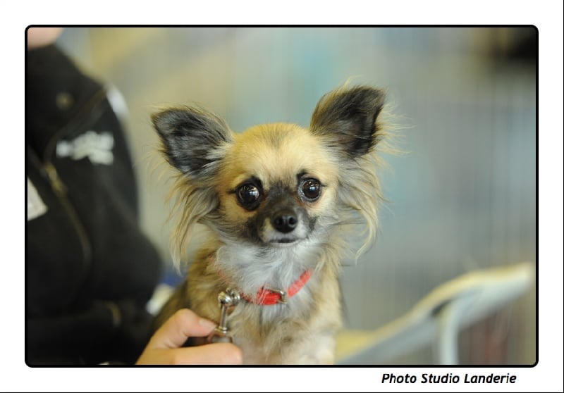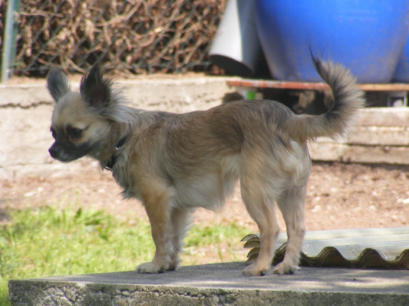 TB tête, manque de stop, chanfrein un peu long, TB dentition, FF, queue B insérée, B longueur, Exc poitrine, chien B construit