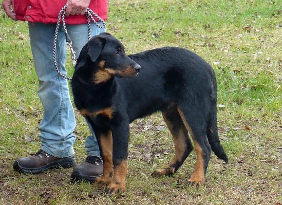 Dcc, très bonne tête, manque un peu de longueur de chanfrein, oeil bien foncé, oreilles bien placées, très bonne pigmentation, très bonne encolure, un peu de fanon. Très bon dessus, le rein est court et large, poitrine d'un bon volume, très bons aplombs et angulations, très bonne proportion d'ensemble. Très bon poil de bonne texture et sous poil, feux correctes de bonne couleur, bonne attitude naturelle, très bonne ossature, très bonne démarche.